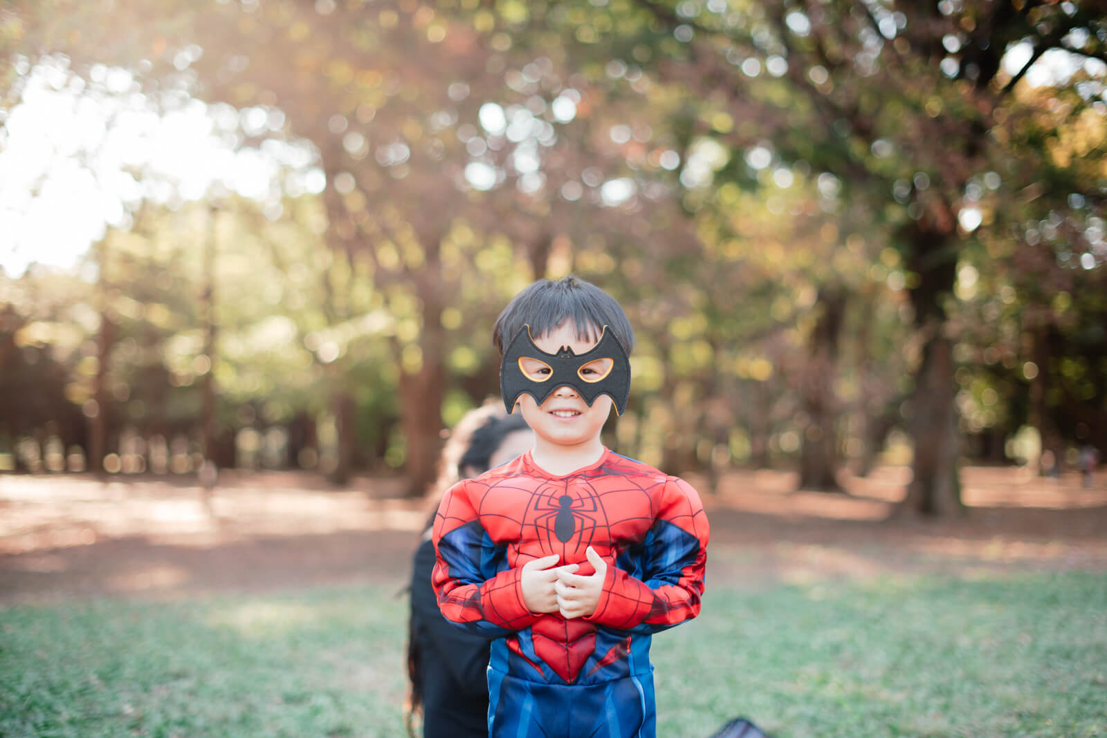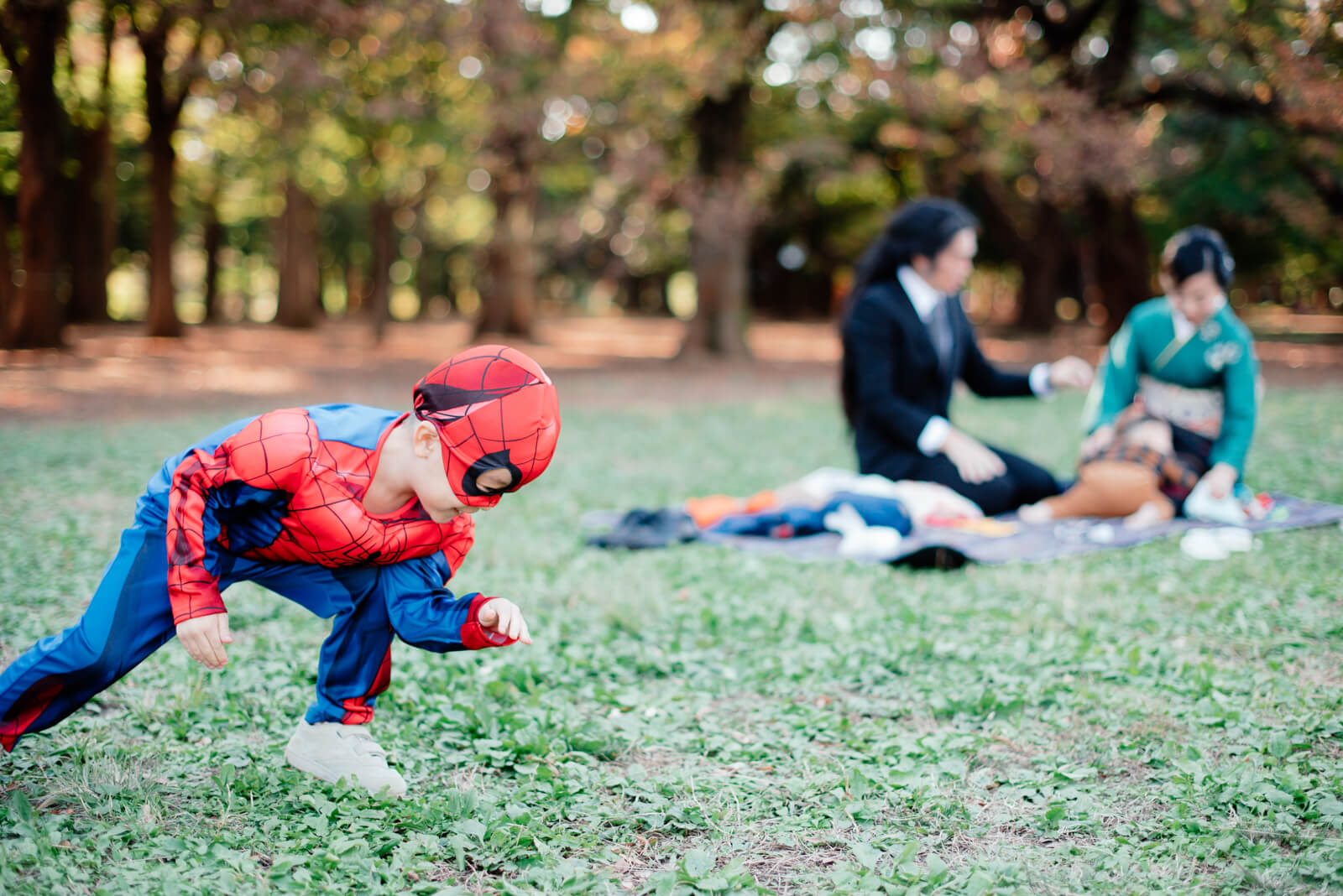 お子様の夢はヒーローになる事。大好きなヒーロースーツを着て公園を駆け抜ける姿は誰もが楽しくて嬉しくて笑顔になる時間です!七五三のおめでとう!そしてヒーローに一歩近づいておめでとう!