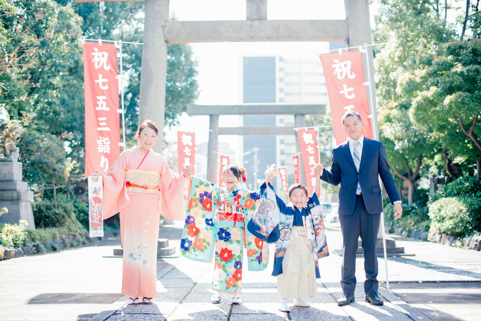 元気なご家族の雰囲気が伝わります。お母様がかわりに千歳飴をもっている様子がなんだかほっこりしますね。