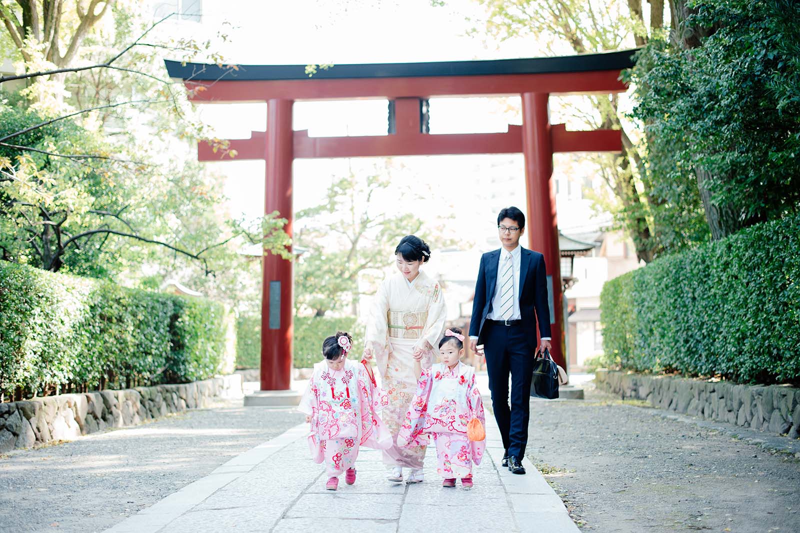 今回私たちがご撮影させていただいたのは、元気な双子の女の子が七五三を迎えたご家族でした。普段からなかなか二人が一緒の写真を残す事が難しかったとおっしゃっていたお母様も、撮影をフォトグラファーにお任せいただいた事で、お子様たちと楽しい時間を過ごされ、お子様たちも普段通り自然と楽しんでいるご様子がとても印象的です。大切な一日を、ご家族全員が心から楽しまれているご様子をご紹介いたします。
