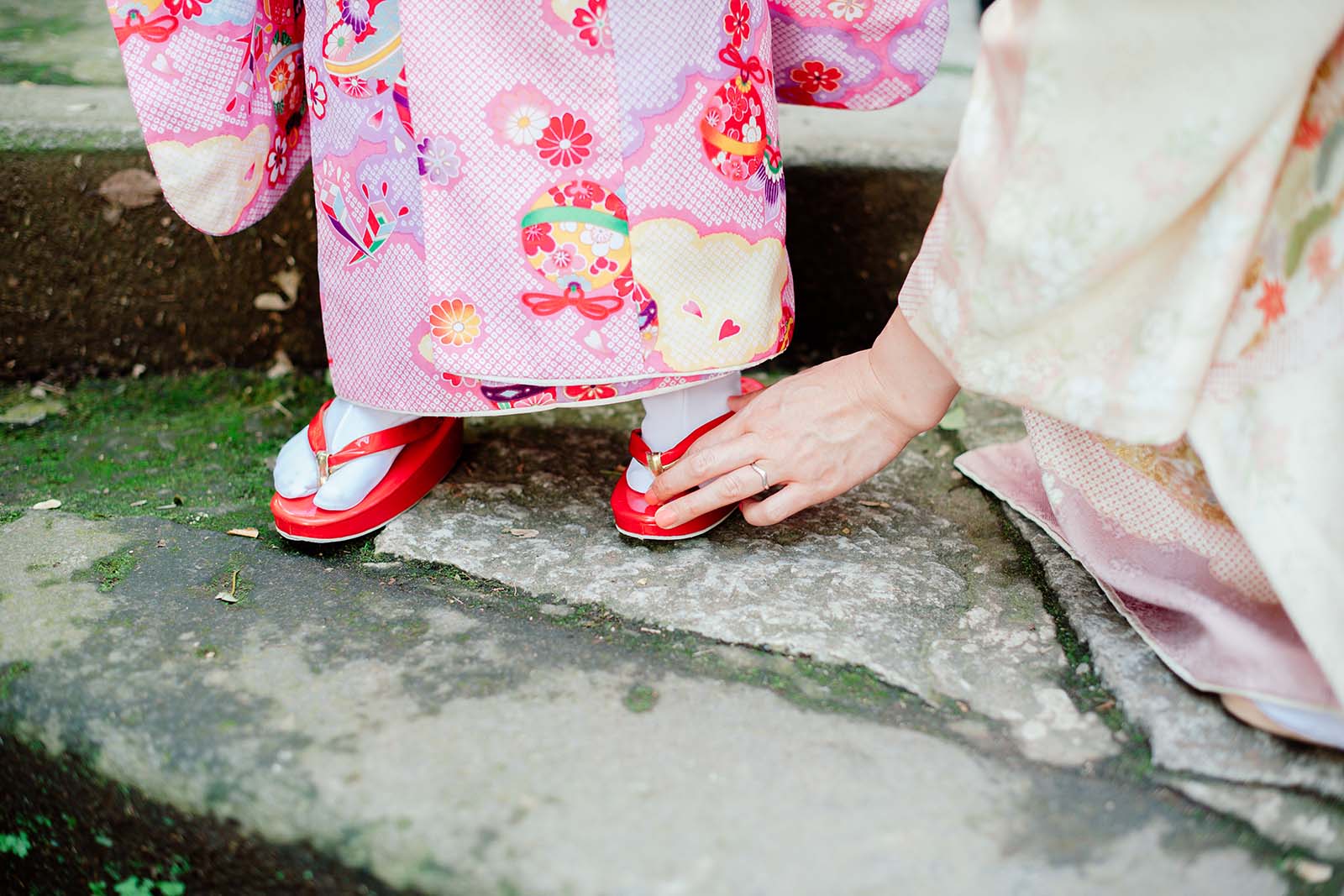 お気づきでしたか?そうです、草履に履き替えました!たまに脱げてしまうけれど、上手に歩く姿はお子様の成長を感じる事ができる瞬間です。