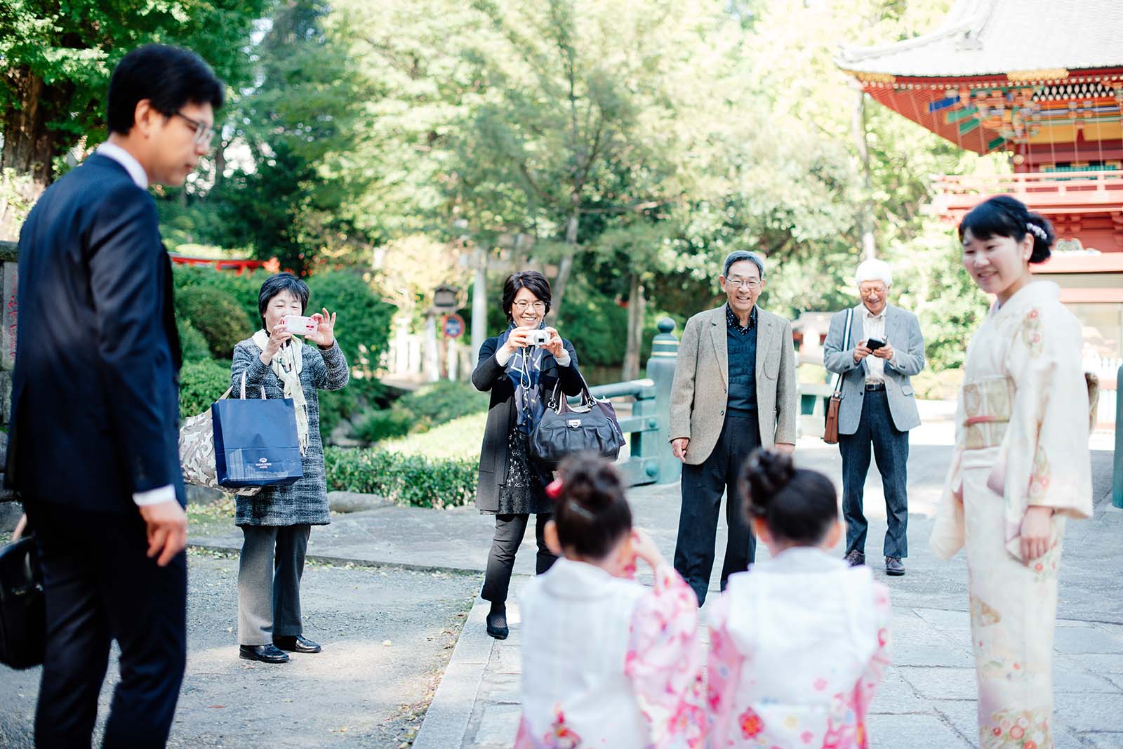お待ち合わせをしていたご祖父母様と合流です。あまりの可愛さに、カメラマンがたくさん!(笑)みなさん思い思いにお写真を収める和やかなお時間です。