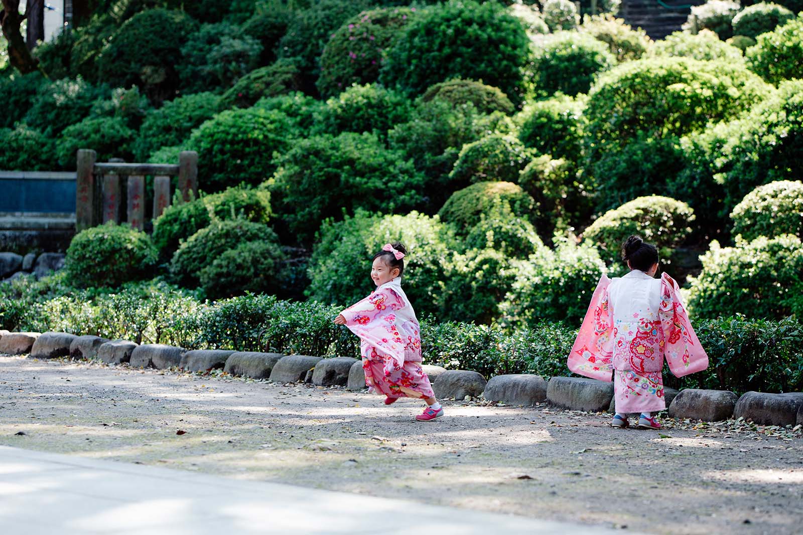蝶々みたいに揺れるお着物が楽しくてくるくる回ったり、思いっきり走ったり。そうです、やっぱりスニーカーが一番!