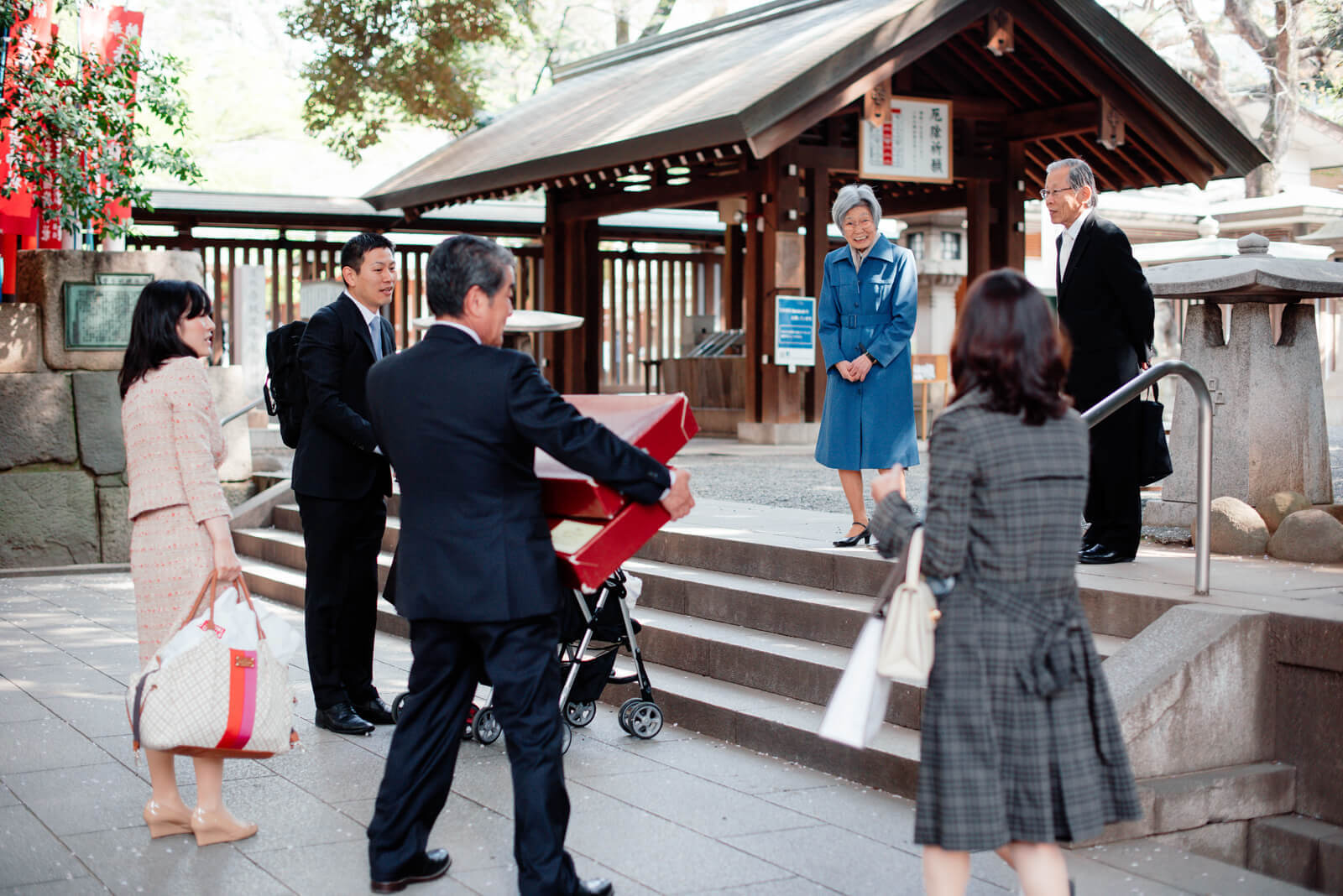 神社にて両家のご祖父母様とお待ち合わせをしました。心からこの日を楽しみにしていたご様子がみなさんの笑顔から見てとることができました。和やかな雰囲気でお宮参りがスタートです。