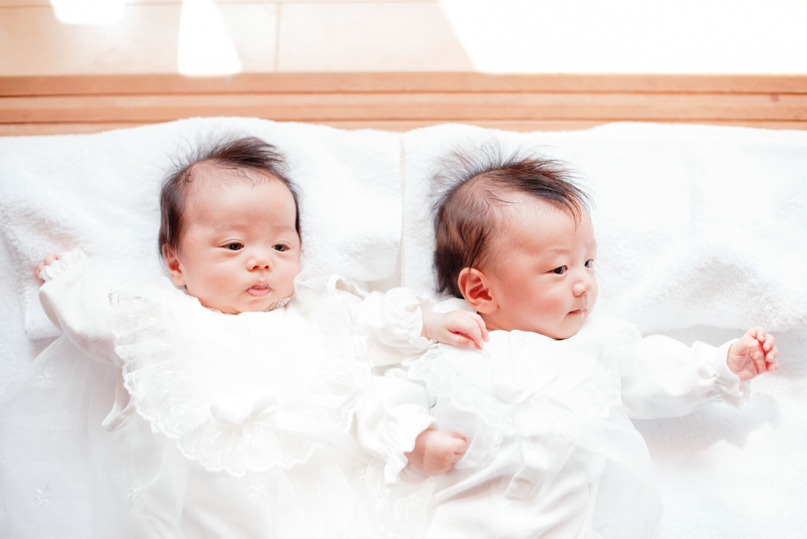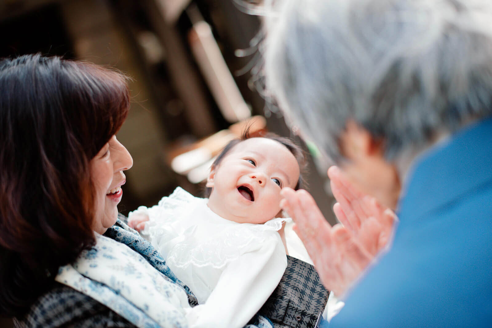 ご祖父母様の嬉しそうな表情は私も忘れられません。双子の赤ちゃんを順番に抱え、一人一人表情を覗き込んでは微笑んでいました。赤ちゃんの時折見せる笑顔がとても愛らしいです。