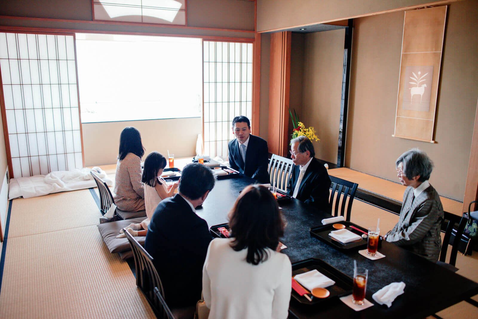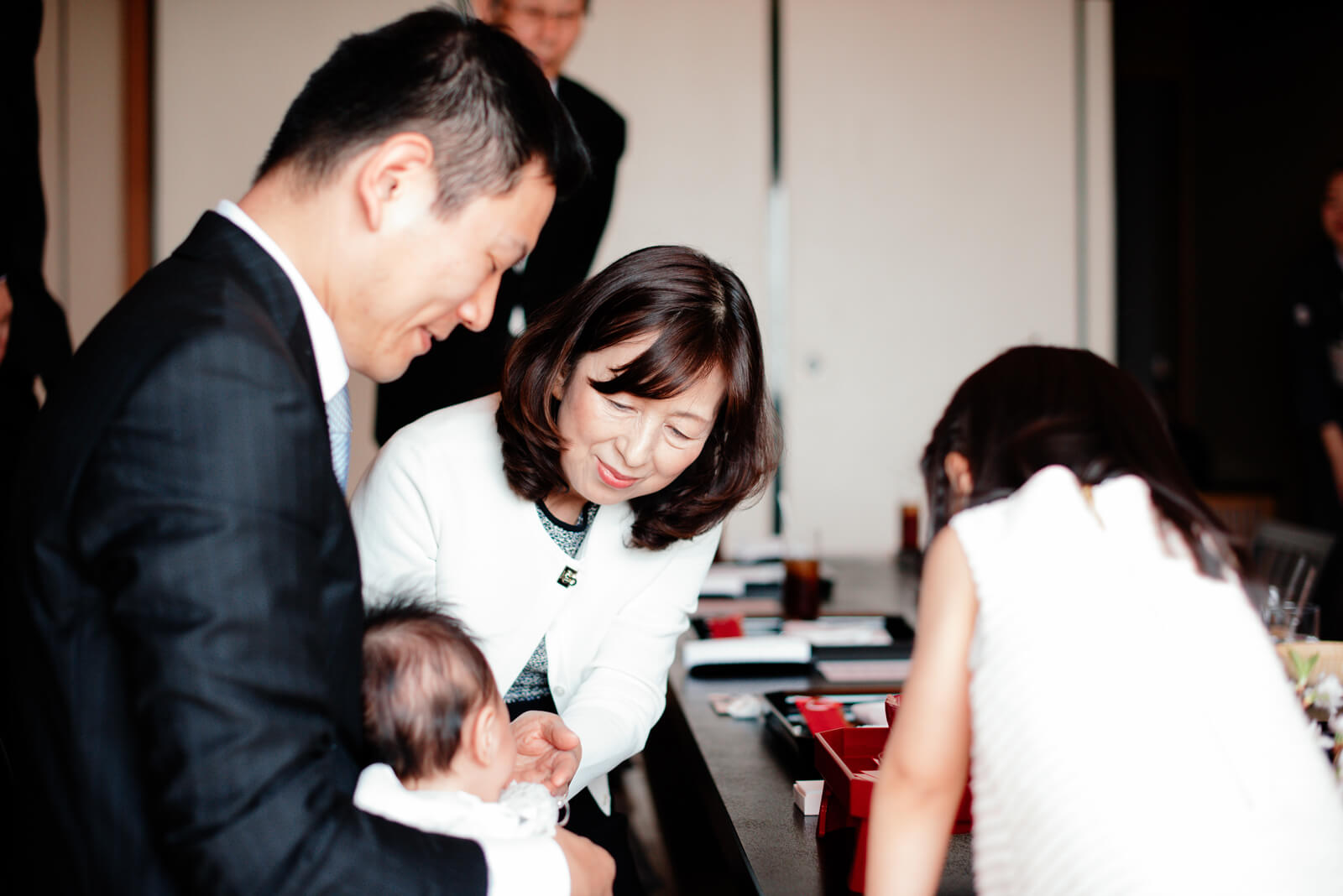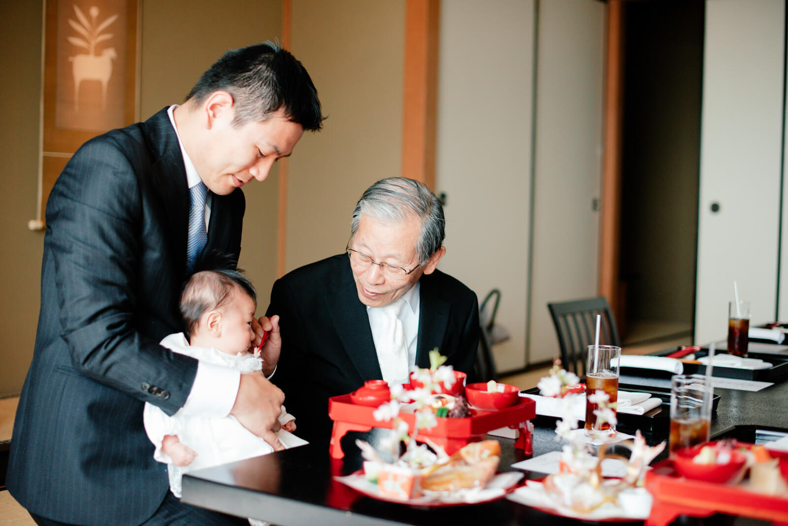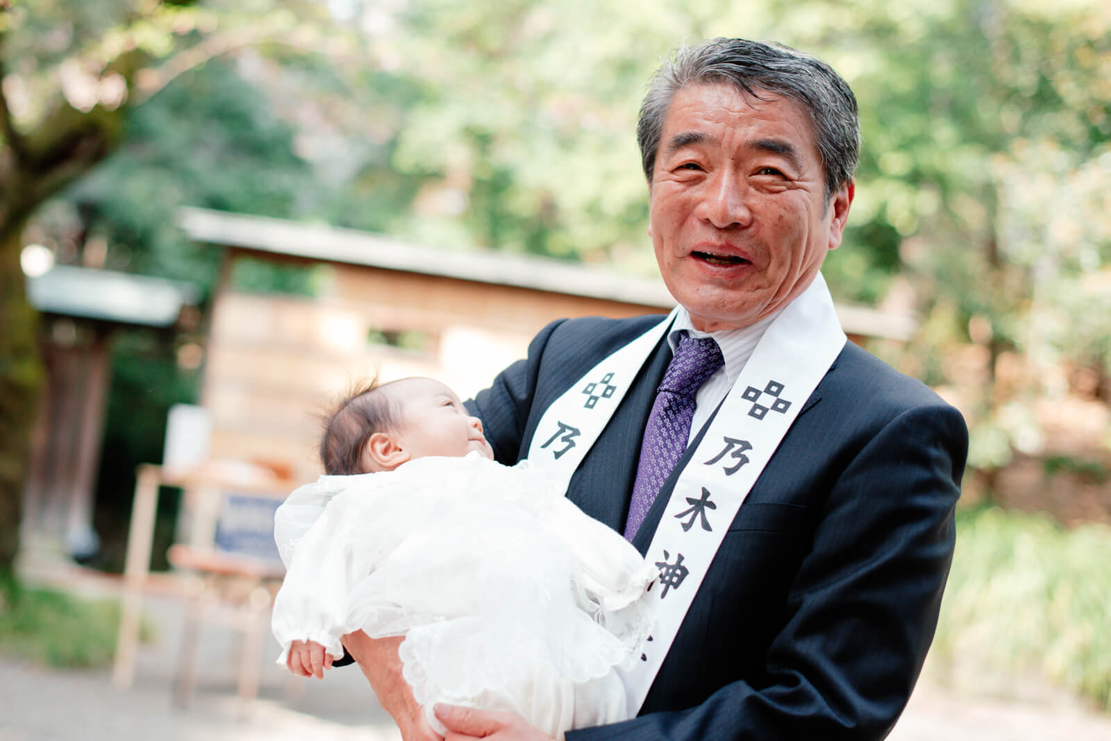 ご祈祷の最中フォトグラファーは待機させていただいていましたが、おばあさまが双子のお子様を一人ずつ抱き、順調に進行しました。