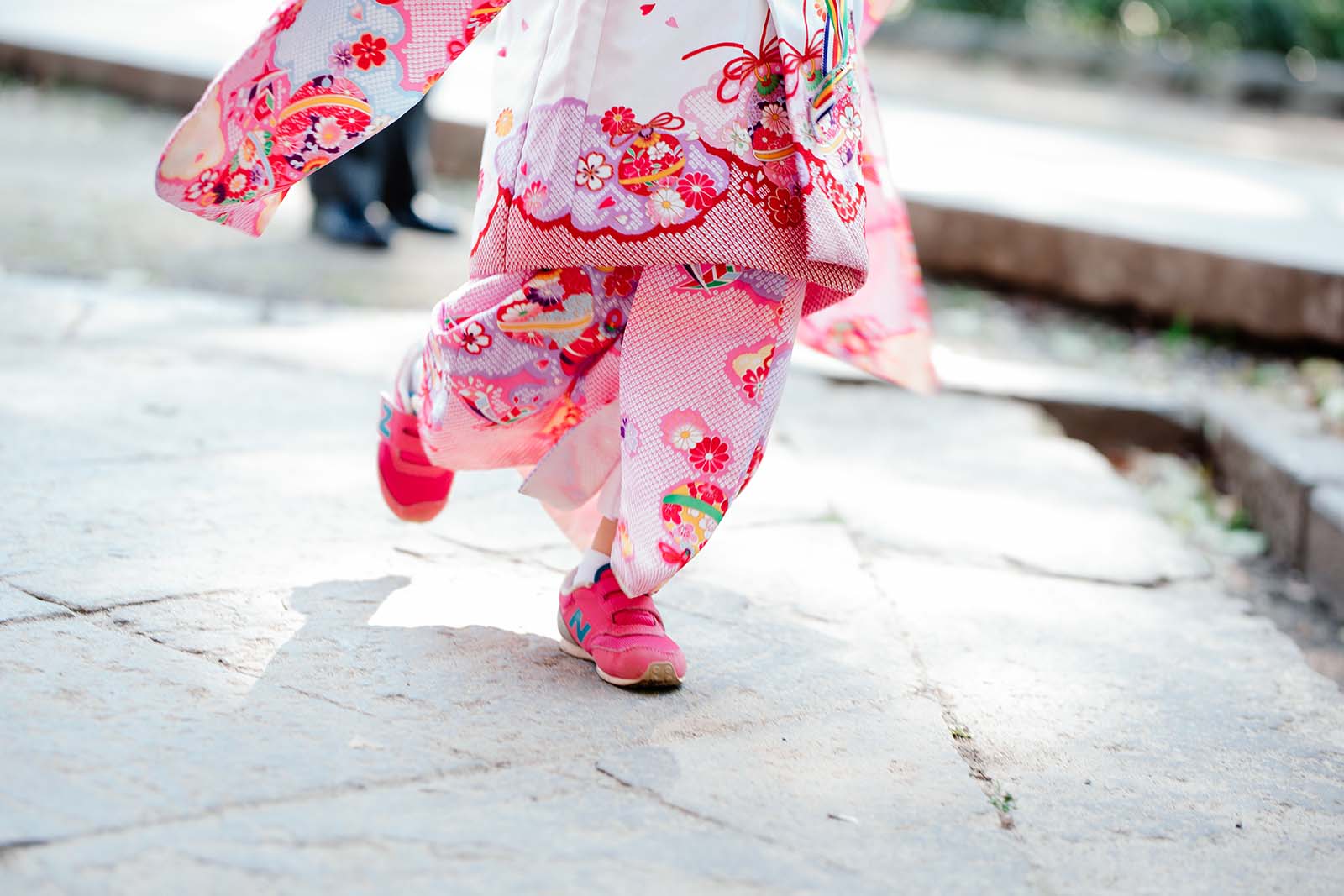 お着物にスニーカー。かけっこが好きな証です。