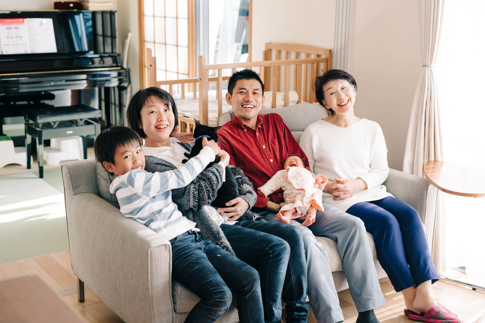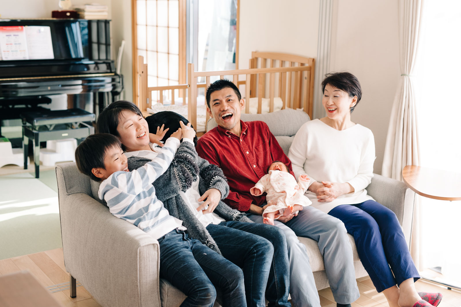第2子誕生とお引っ越しを機に2回目の撮影をさせていただきました。この日はお母様もご実家からいらしていて、温かい日差したっぷりの新居で、小さく喜ばしい声とピアノの音とともに穏やかな1日をご一緒させていただきました。