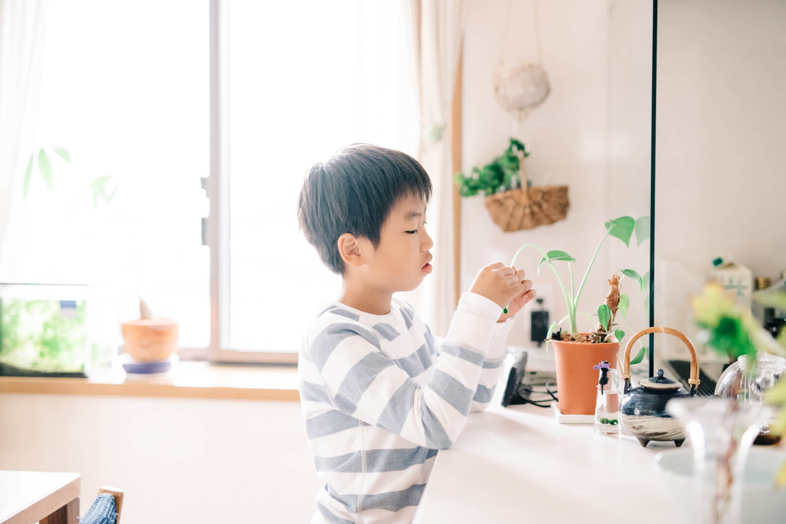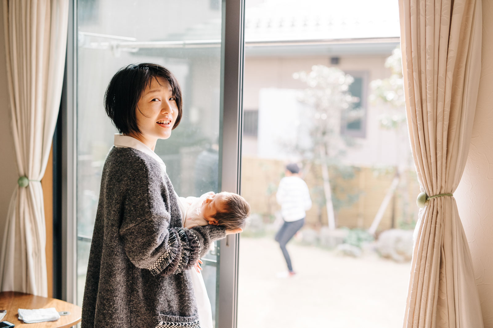 第2子誕生とお引っ越しを機に2回目の撮影をさせていただきました。この日はお母様もご実家からいらしていて、温かい日差したっぷりの新居で、小さく喜ばしい声とピアノの音とともに穏やかな1日をご一緒させていただきました。