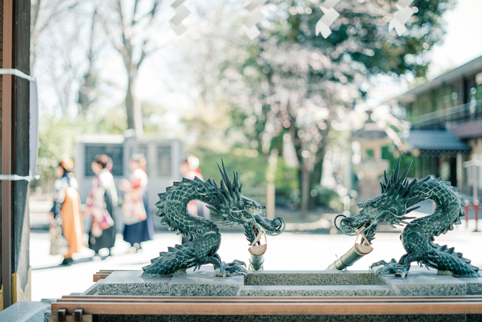 大國魂大神を武蔵国の守り神としてお祀りした神社として人々から愛されています。人々に衣食住の道を教えられ、医療についてやまじないの術も授けられたといわれている縁結び、厄除け・厄払いの神として著名な神様です。撮影に向かう道中も、優しくも力強く咲き誇る桜に見惚れる瞬間も多い日和でした。