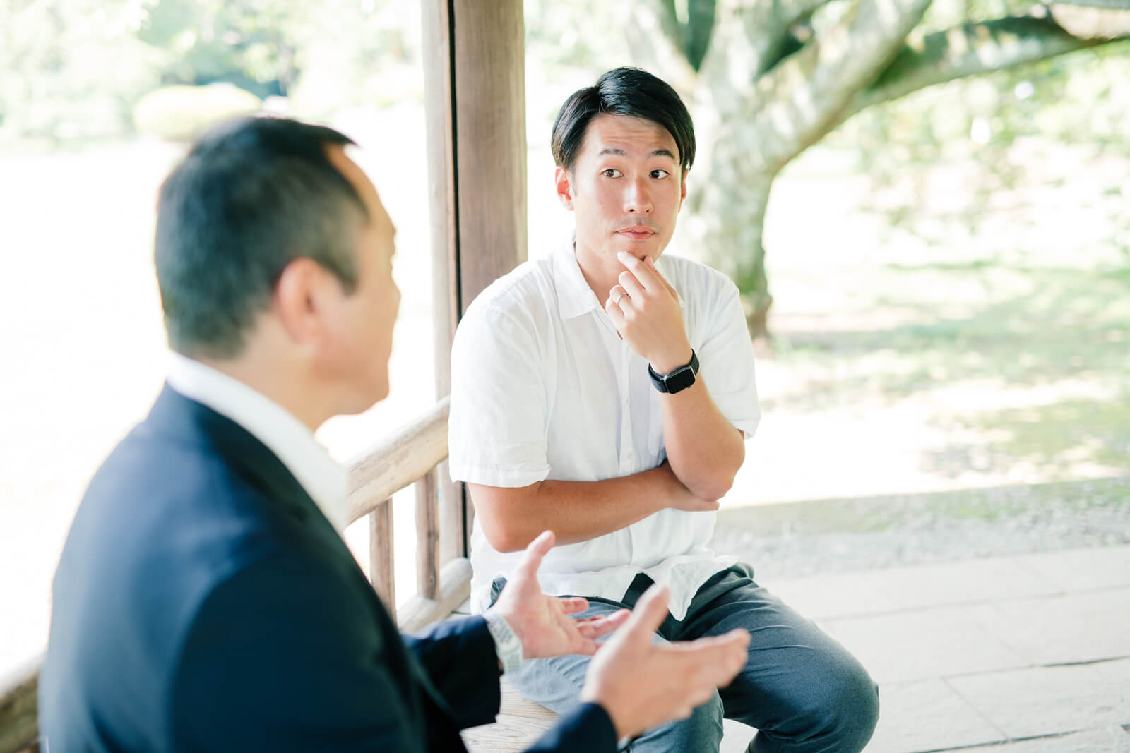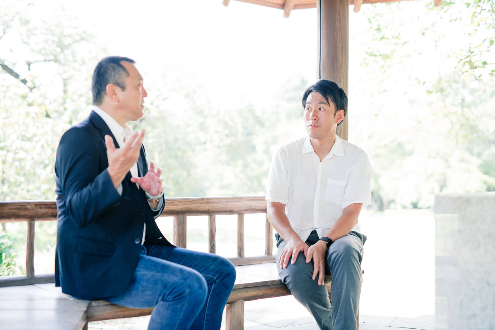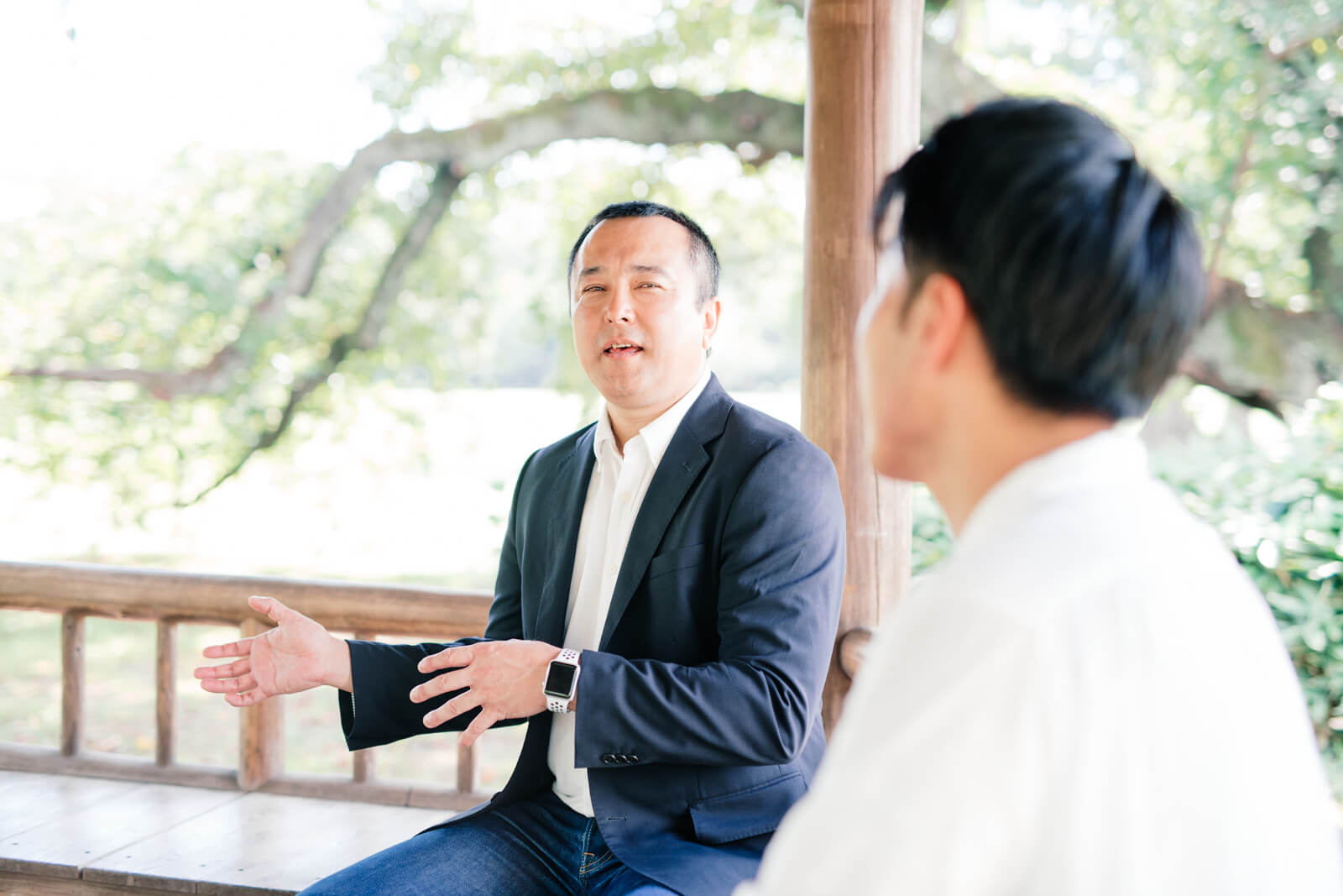 151画: 本日はどうぞよろしくお願いいたします!生命力に溢れる木々のように、クライアント企業の成長を支えるという、佐藤さんの会社への想いに合わせて森を歩きながらインタビューできましたらと思います。