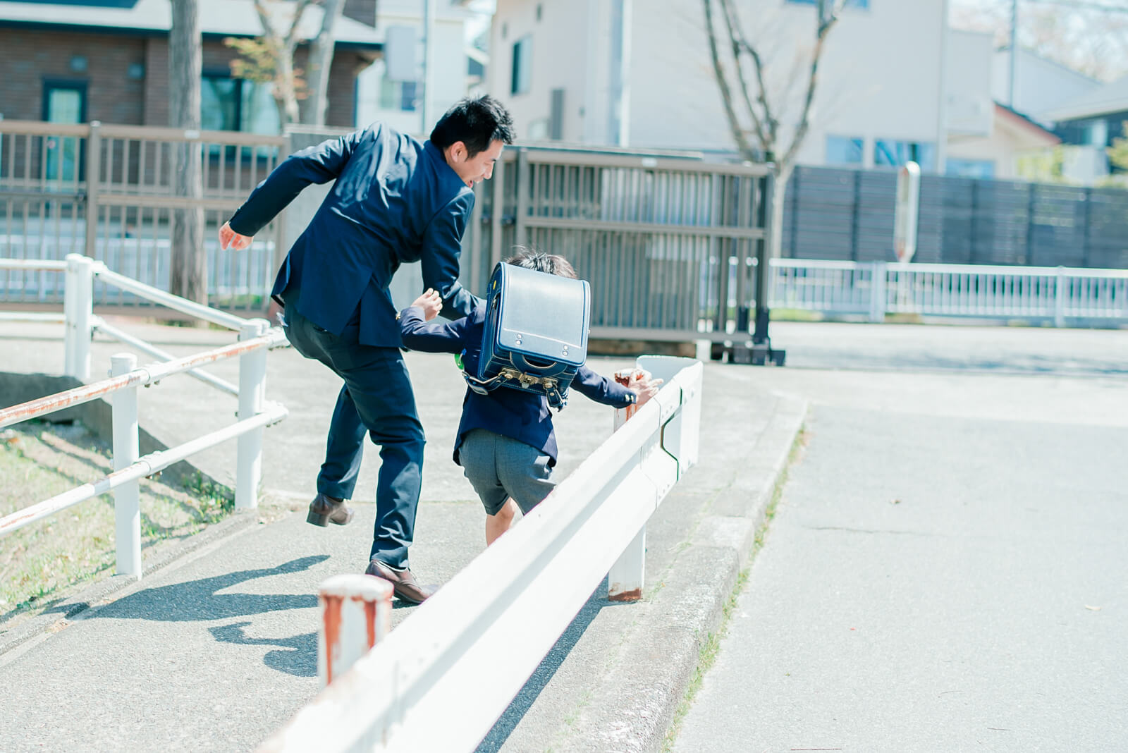 ■休日にご家族で一緒に毎日通った通学路を、ランドセルを背負って一緒に歩いてみながら写真を撮るのはいかがでしょうか。通学中につい立ち止まりたくなってしまういつもの場所。宝物の石を隠している公園の花壇。心で挨拶をしている近所の犬や猫。お写真を取りながらお子様がみている光景を一緒に見つめてみてください。