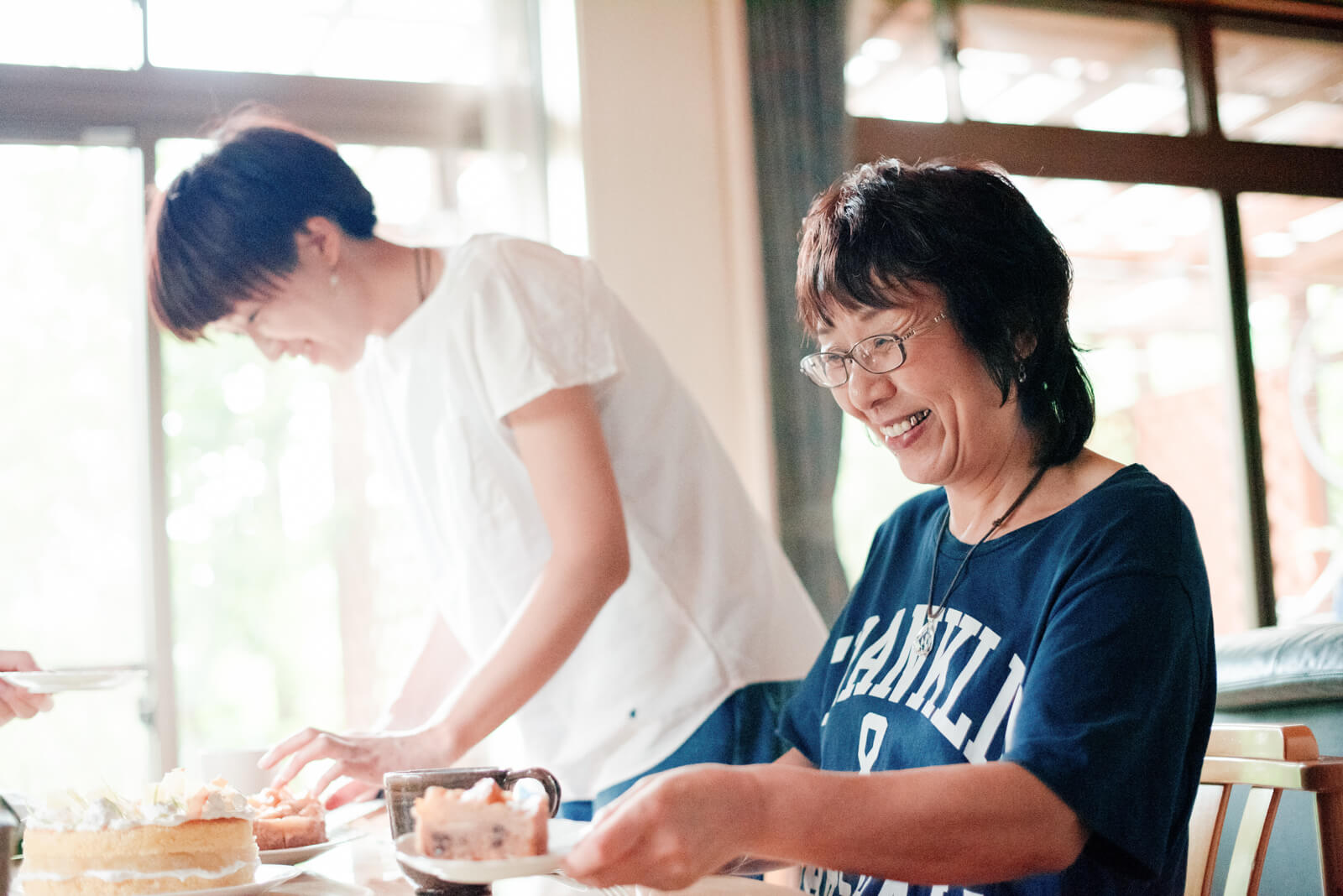 久美さん:まさかあんなに楽しい一日になるとは思ってもみなかった(笑)。 忘れられない特別な一日になりました。 私たちは『母の還暦祝い』、自宅で家族全員そろってお昼ご飯を食べ、そしてケーキを食べてお祝いする風景を撮影してもらう内容でお願いしていました。 初めてのことですし、とても緊張しました。 けれど、そんな緊張もカメラマンとしてはるばる来てくれた夕貴ちゃんに出会ったらどこかへすっ飛んでしまいました。