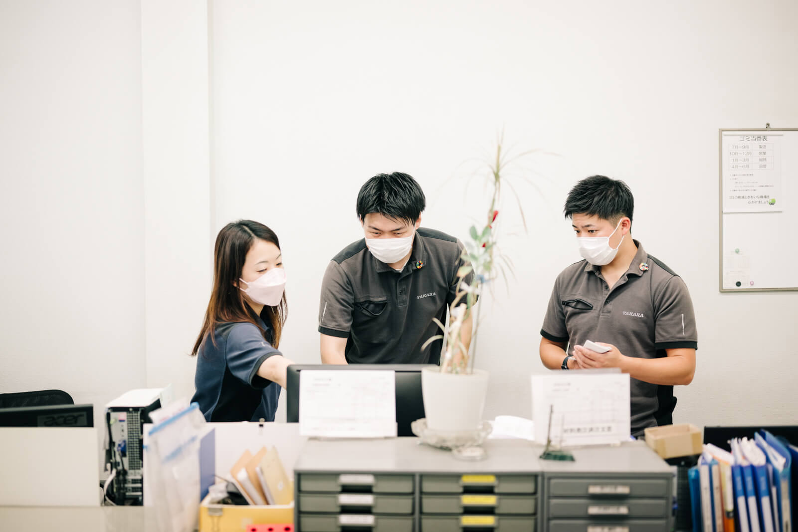 「より早く、より安く、より確実に」 をモットーに、精密機械部品・各種ボルトナット類の加工、組立等を行っている株式会社宝製作所。 ご撮影では、代表者様や撮影のご担当者様をはじめ、従業員の皆さまがとてもアットホームな雰囲気のなかでお仕事をされているように感じました。お写真とメッセージは代表の本橋さまより全ての従業員さまへ手渡しで贈られました。