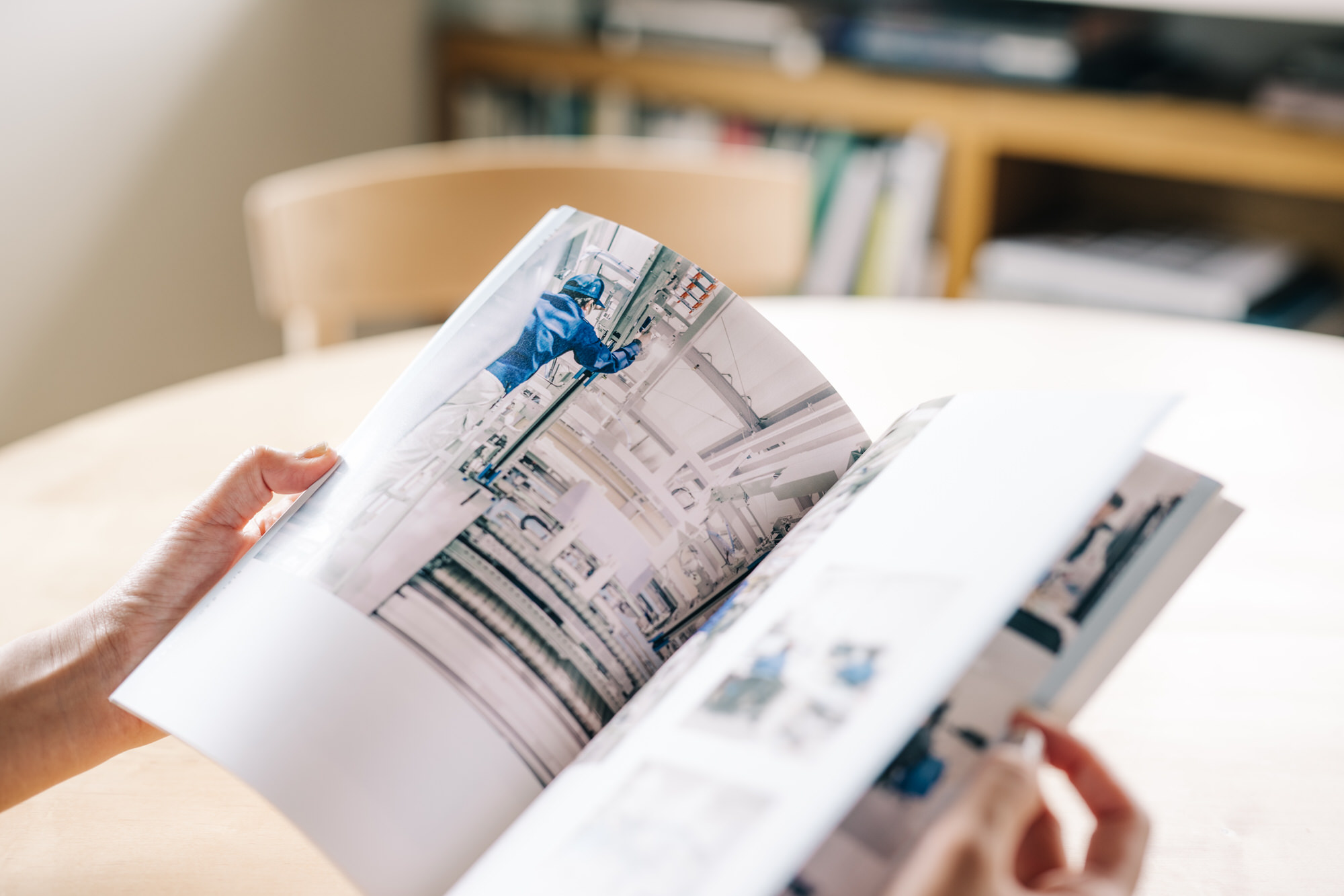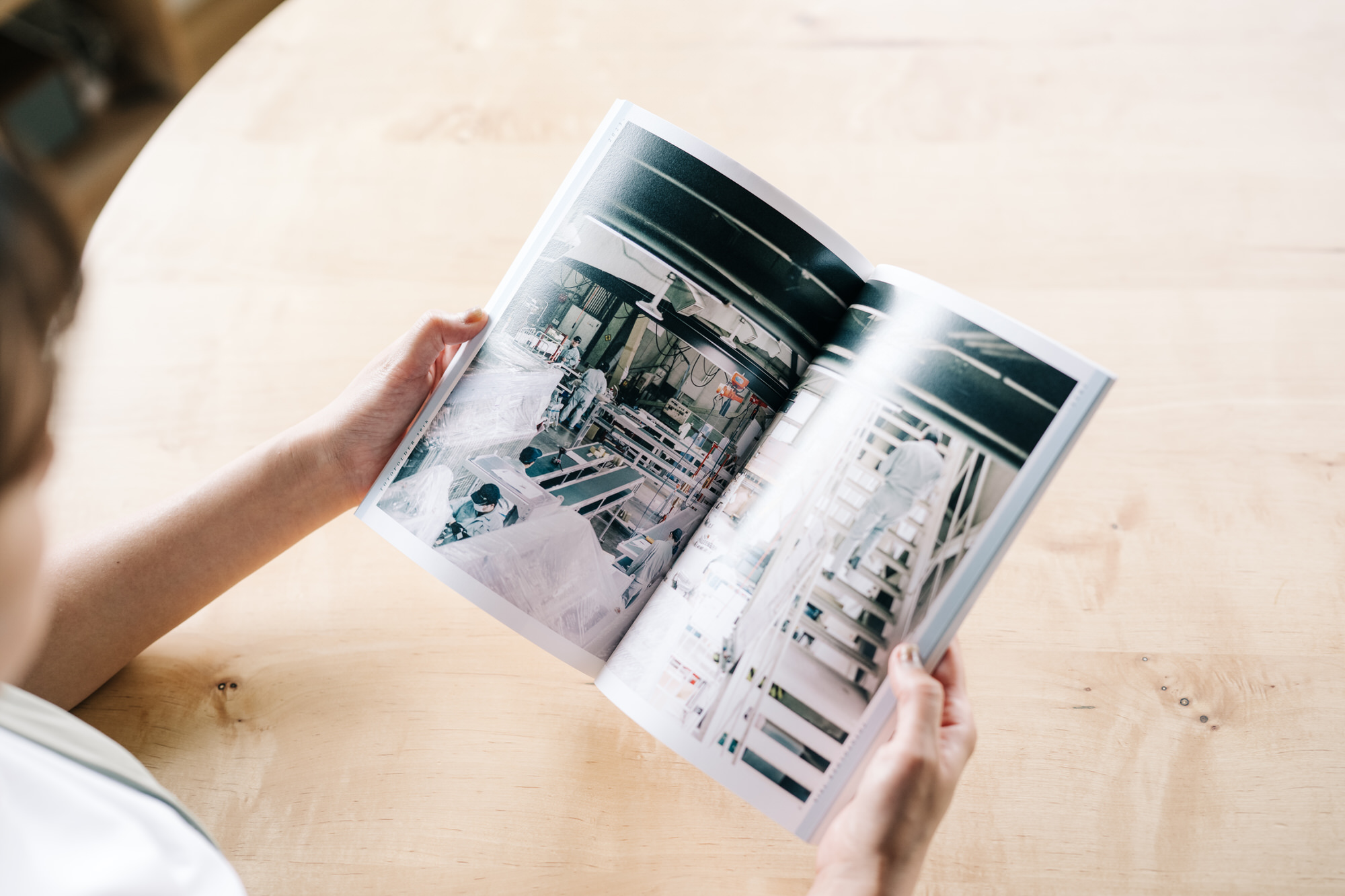 東都フォルダー工業株式会社は、ホテルや病院など様々なシーンで使用されるリネン製品をたたむ機械を主に製造し、国内ではトップシェアを誇り、その技術は世界でも認められている企業です。この度は50周年という節目に合わせ、全従業員の方の働く姿やポートレートを記載した写真集をつくるというプロジェクトで撮影からデザイン、製本まで行わせていただきました。写真集では、創業から今までの歩みと現在働かれている全従業員様のお写真を撮影し掲載しました。また、写真集を手渡す50周年式典の記念撮影まで、一連流れを通しご一緒させていただきました。