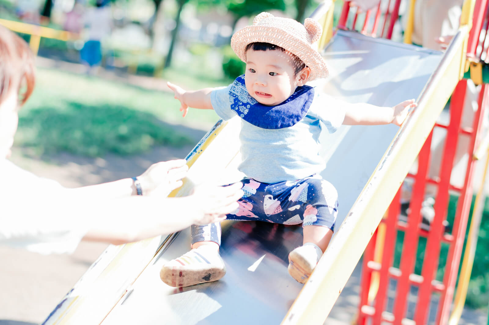 初めての滑り台に挑戦