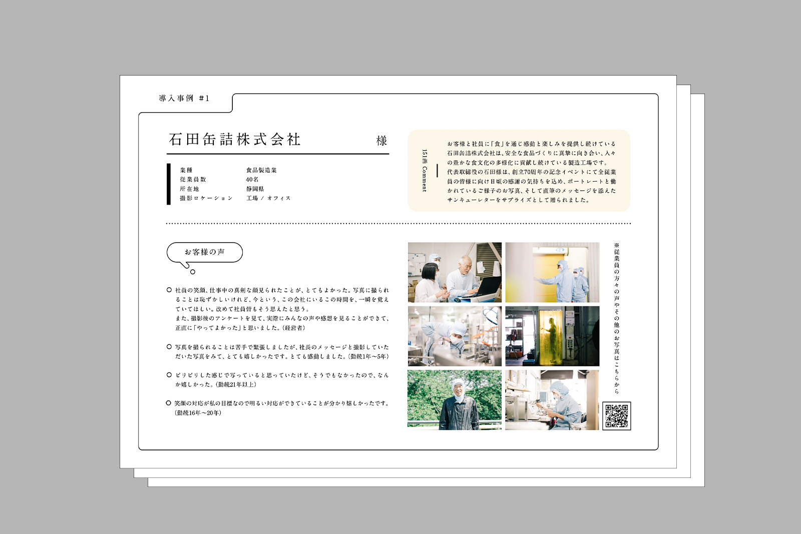 サンキューレターの形式に限らず「会社の記録として”日々の働く姿”を残したい」「会社の周年写真集を制作したい」など、