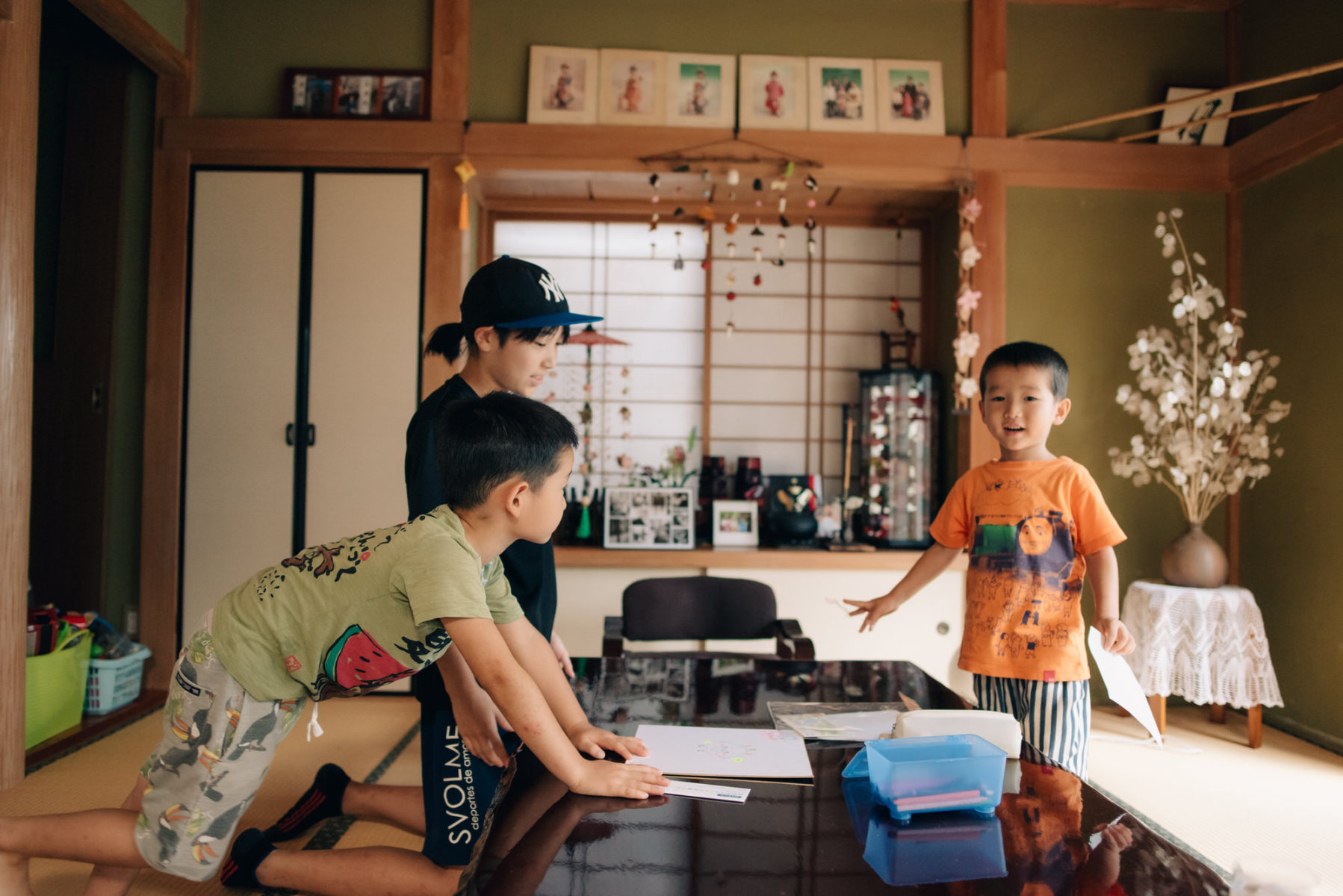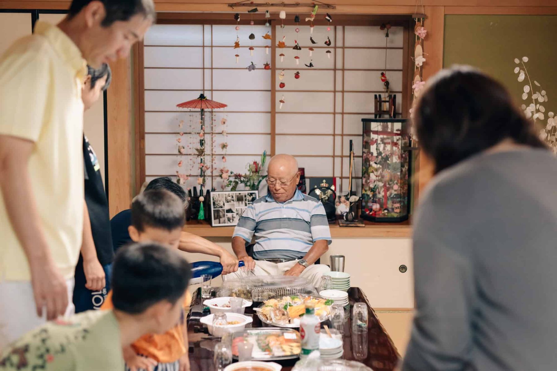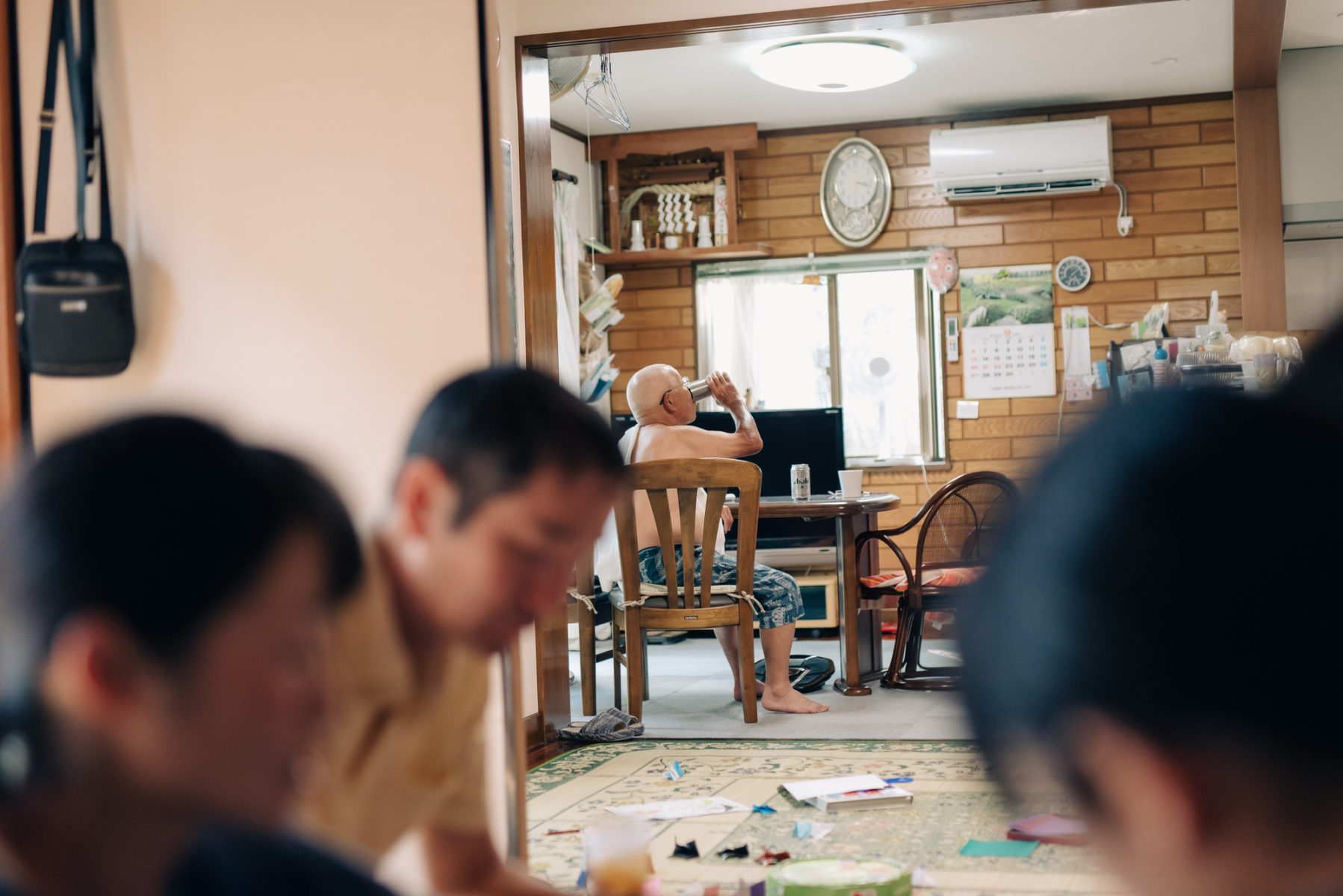 ご親戚の皆様そろってお祖父様の退職のお祝いをされました。一つの家に親族が少しずつ集まり始め、楽しい食事の後に子ども達は近所の河原へ花火をしに行きます。夏の柔らかい風がいつまでもこの日を思い出させてくれるような記憶に残る楽しい時間は、自分自信が家族と過ごした夏の記憶を思い起こすような不思議な感覚でした。